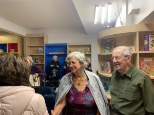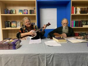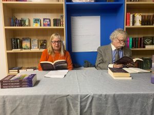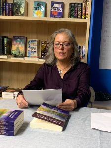 Ann McMillan, co-editor, enjoys the readings